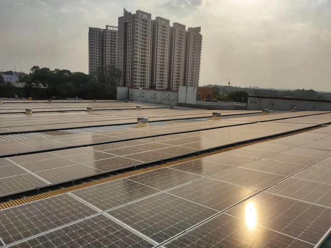 Becquer team conceptualizes, designs, and builds solar power system on the rooftops for schools, colleges, factories, warehouses, etc. Irrespective of the project type, the system is designed for maximizing the power space efficiency, given the space constraints in most projects. The efficiency of the solar module is between 22%-25%, with a performance ratios of 81% and above. The modules used have a power rating ranging from 50 W to 800 W, depending on the suitability of the application. The picture below shows one of the key projects engineered by Becquer, where the solar roof is capable of withstanding over 250 kmph of wind load, without any parapet wall around it or without any puncturing of the roof that prevents any sort of water leakage.